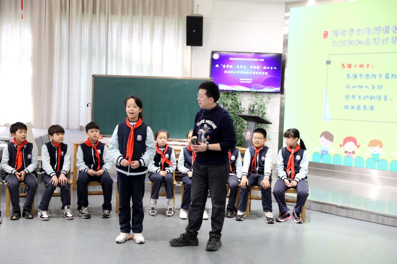 第三節課是夢劇(jù)場的《易拉罐的故事(shì)》,執教者是音樂學科(kē)組的趙骁彤老師。本課是勞動教育在琅小小主人夢劇(jù)場課程平台上的創新實踐。趙老師以教育戲劇(jù)的基本範式爲載體(tǐ),引導學生實現角色體(tǐ)驗、情感表達和戲劇(jù)創作(zuò)。同學們化身(shēn)小演員(yuán),在表演中培養勞動的精神,塑造勞動的品質。